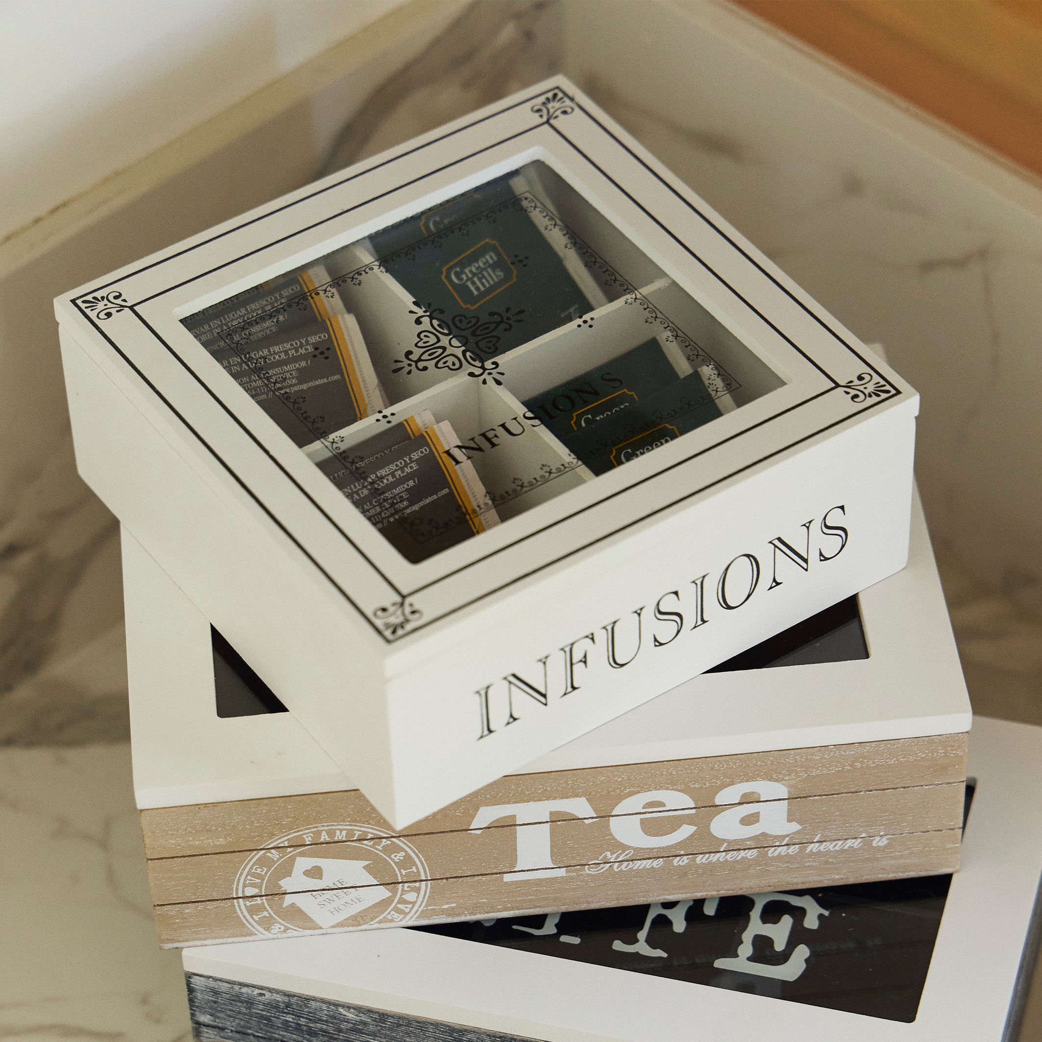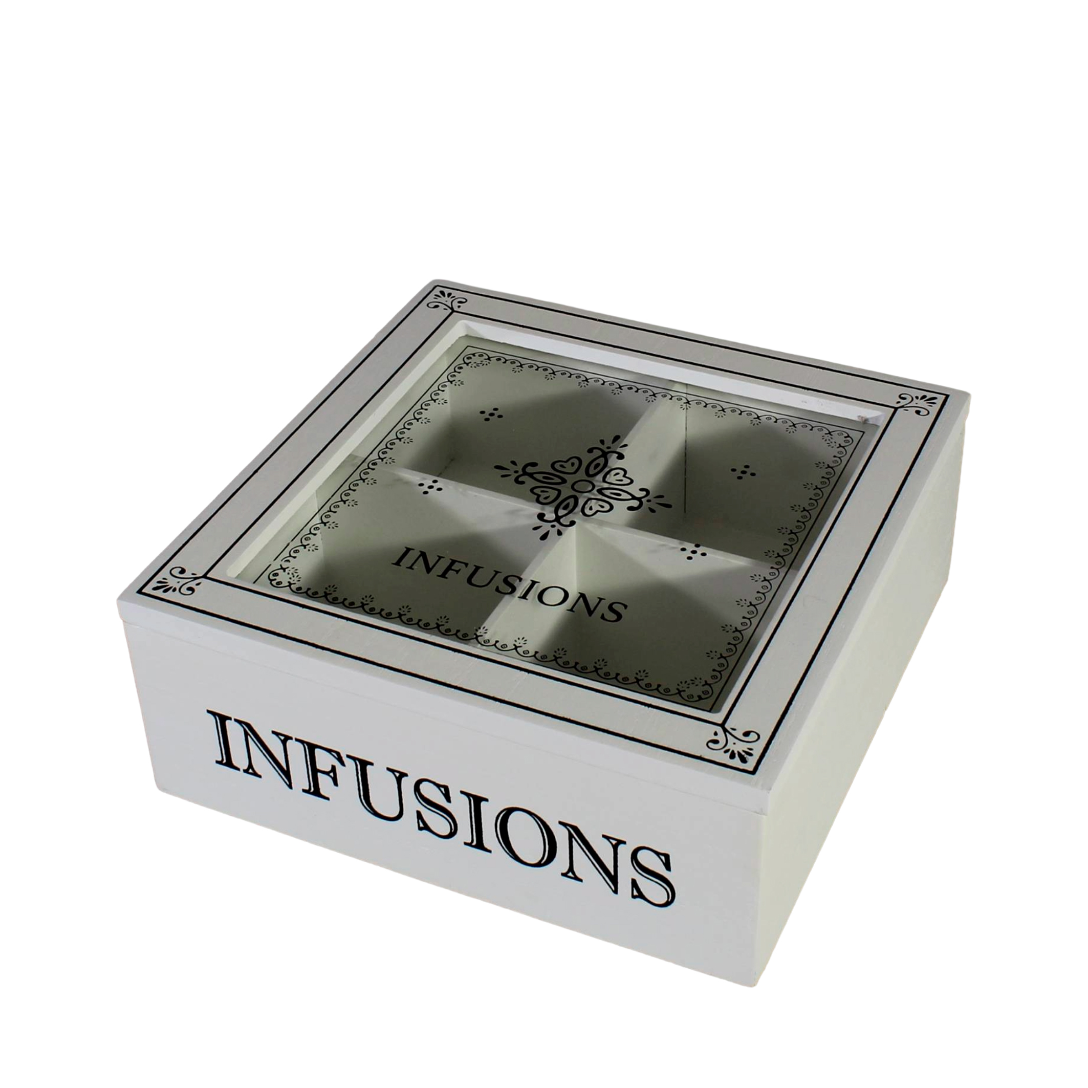NC Caja de Madera p/Té 4 Div.18x18x7cm