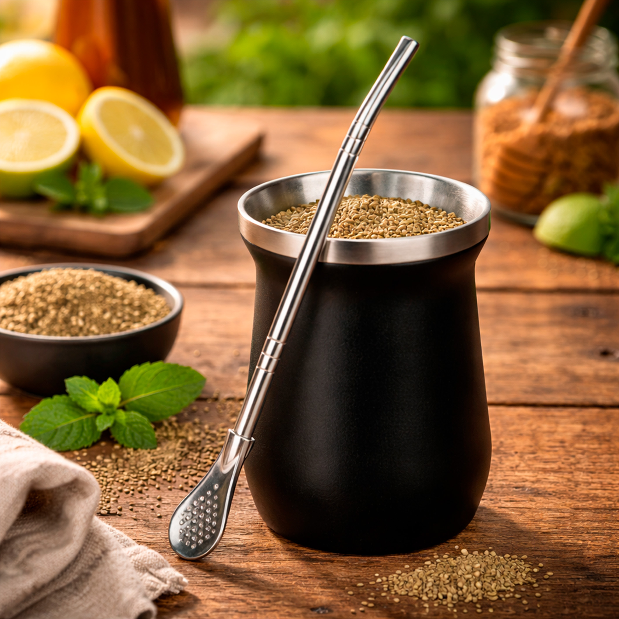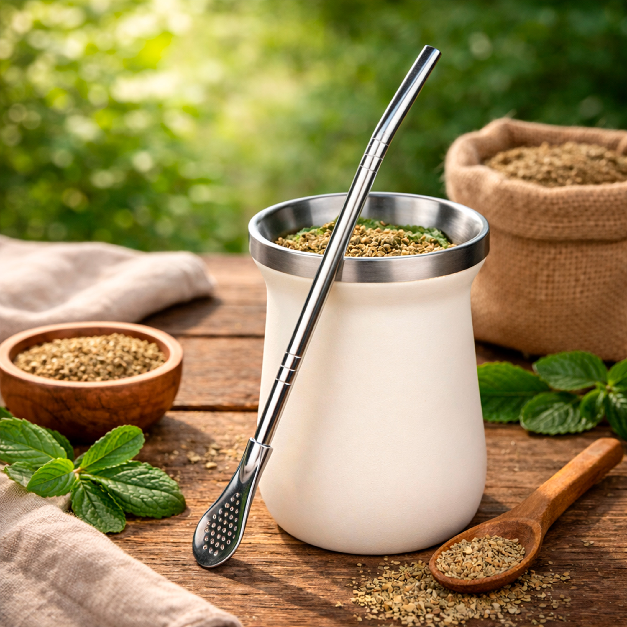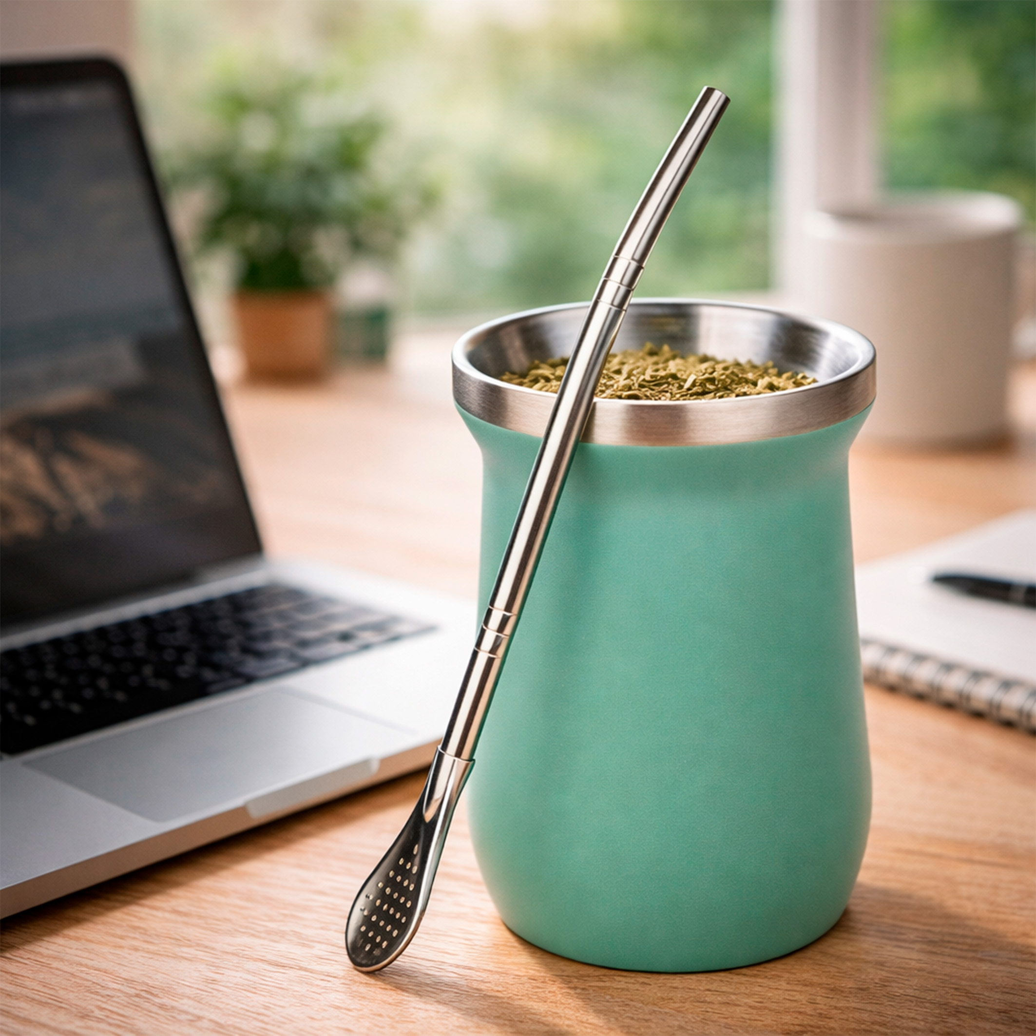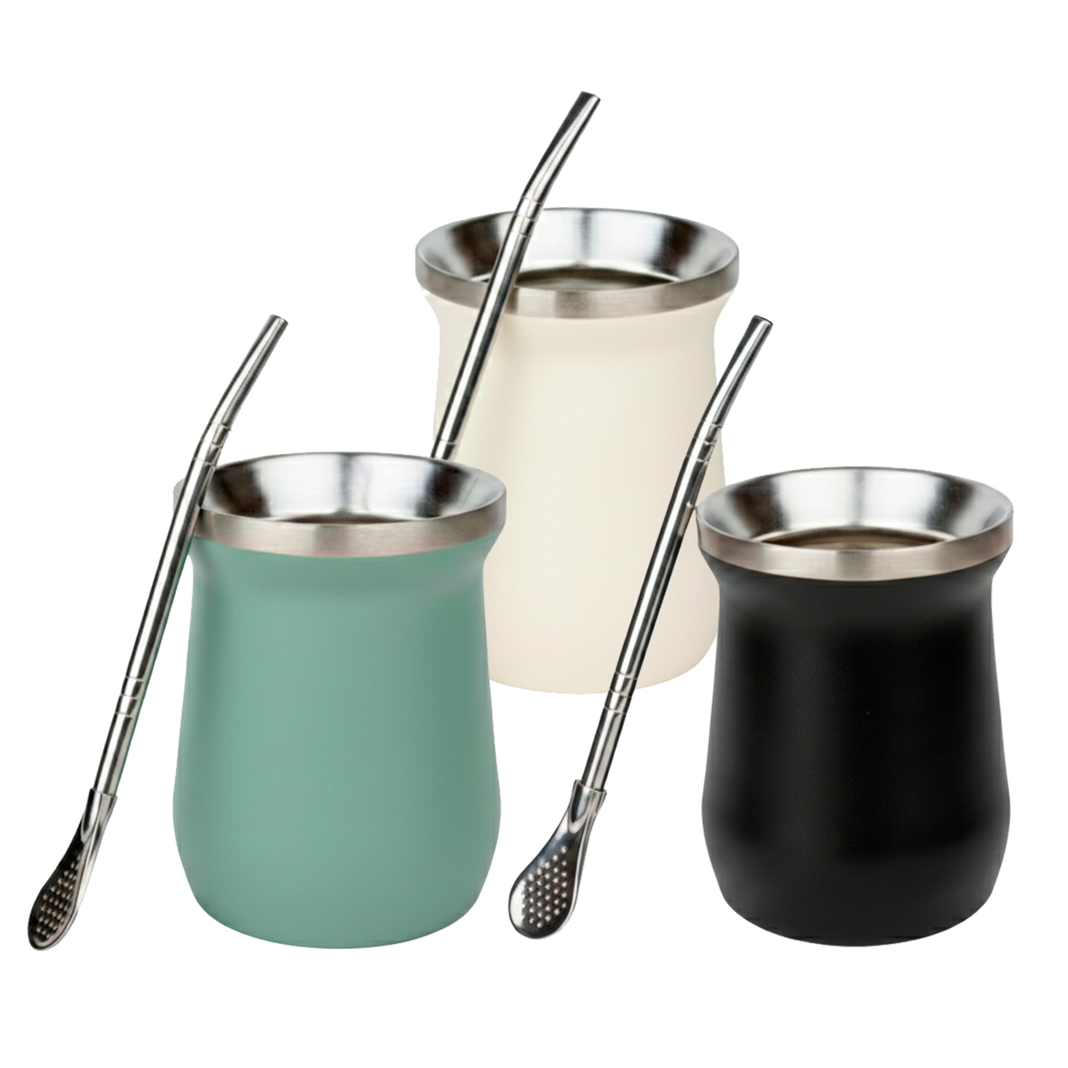 NC Mate Termico 260 ML C/Bombilla Acero Inox Blanco/Verde/Negro
