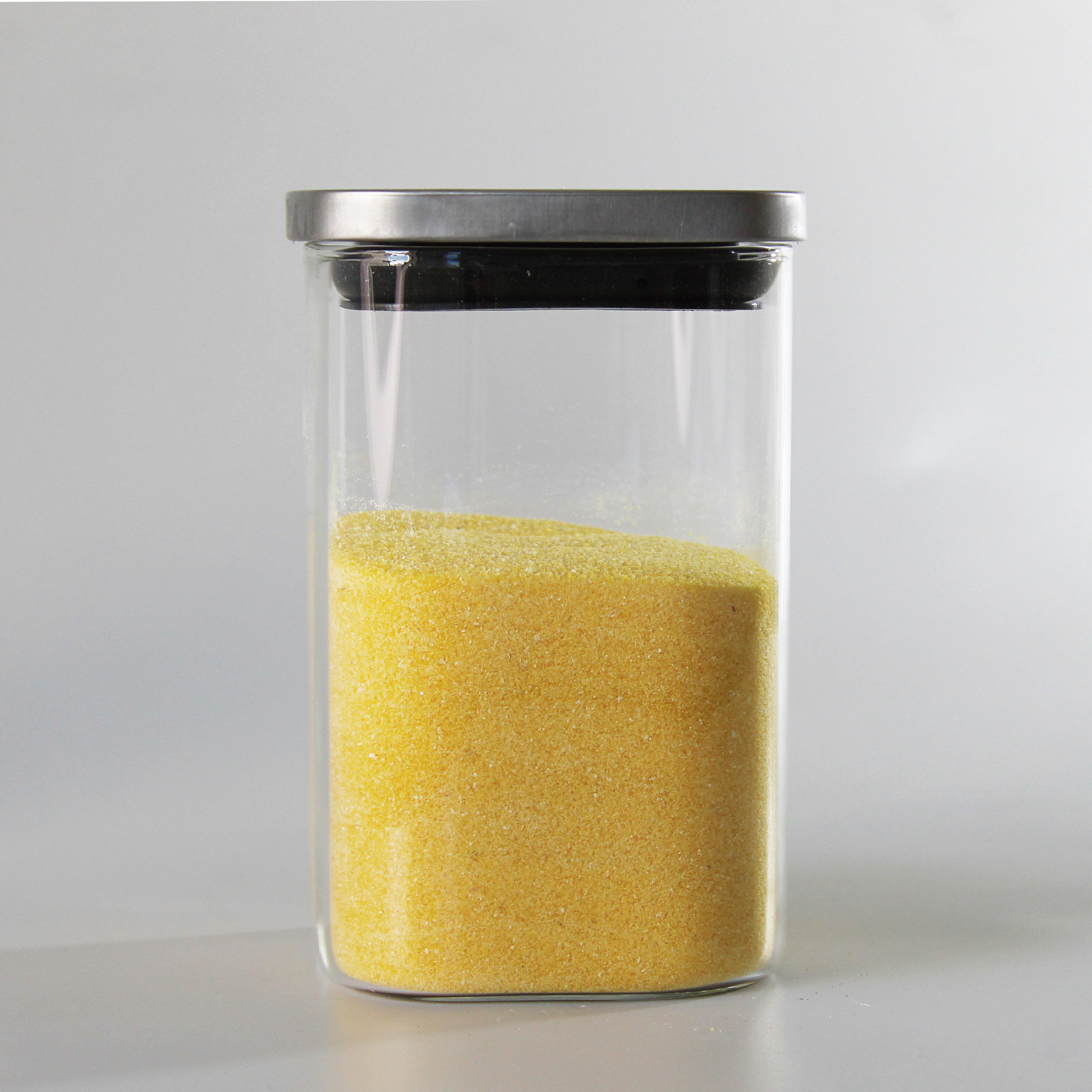 Tarro Vidrio Cuadrado 1.3 L 10X10X15 CM Tapa Negra / Cromada