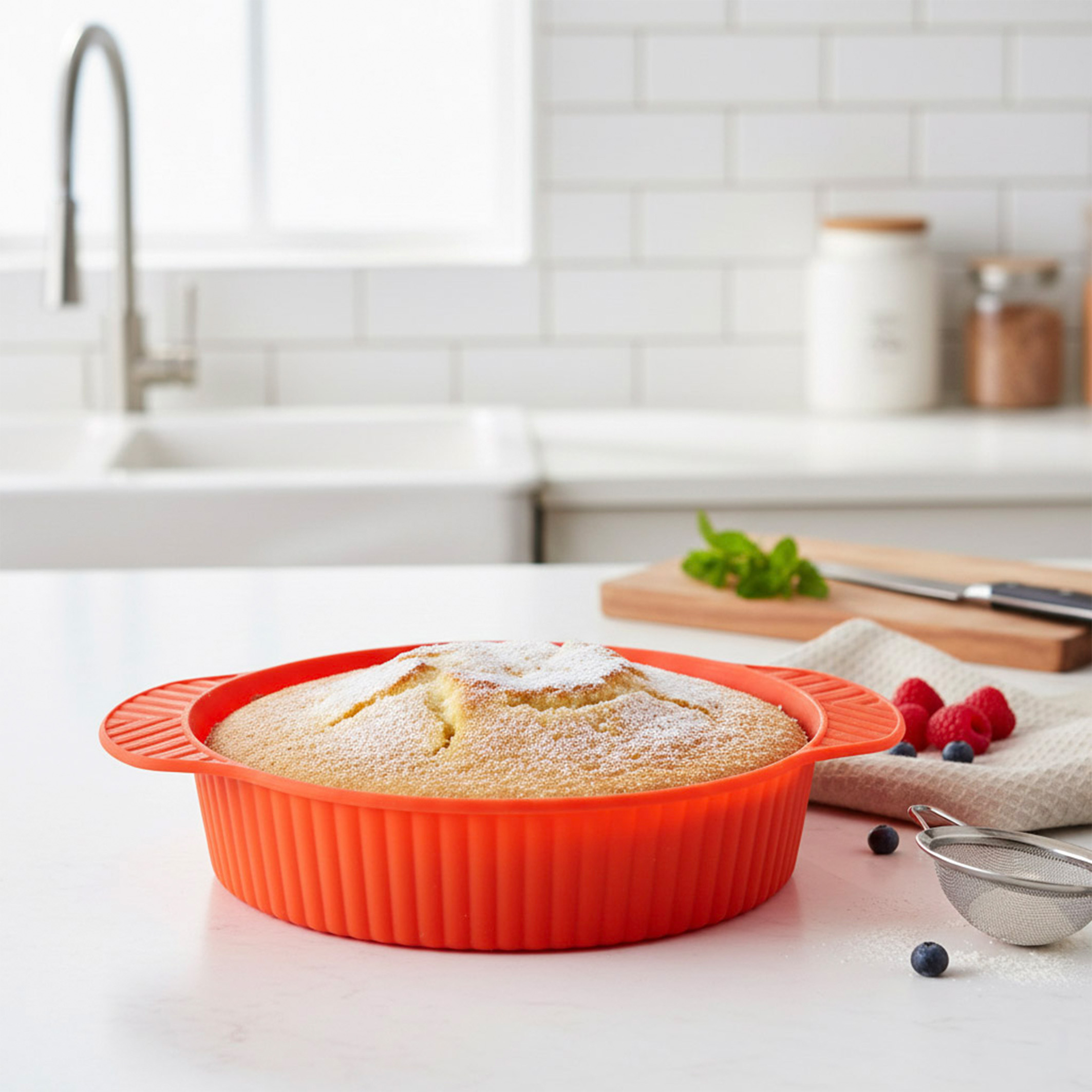 TORTERA ALTA CON ASAS 22 X 5 CM SILICONA NARANJA