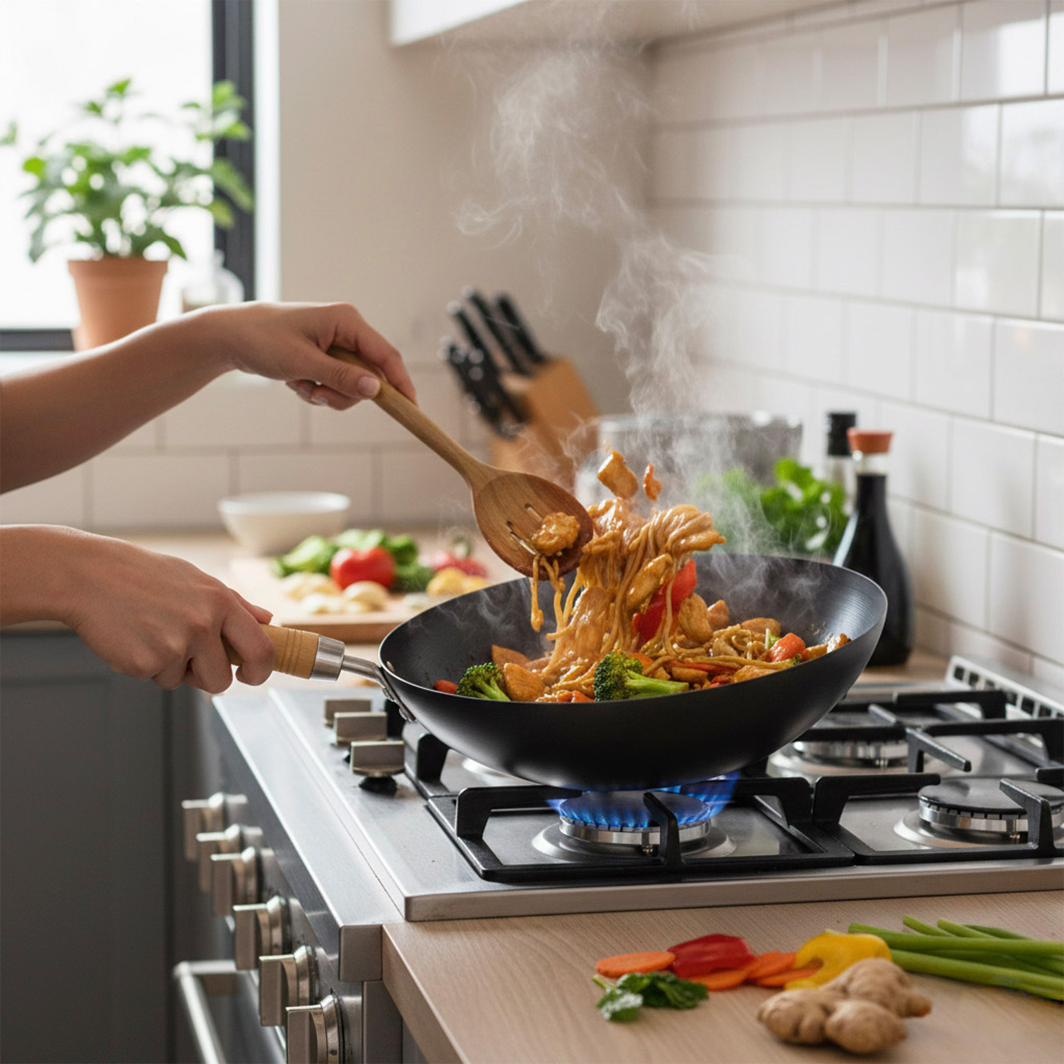 Nouvelle Cuisine Wok con Antiadherente 25 cm Mango de Madera